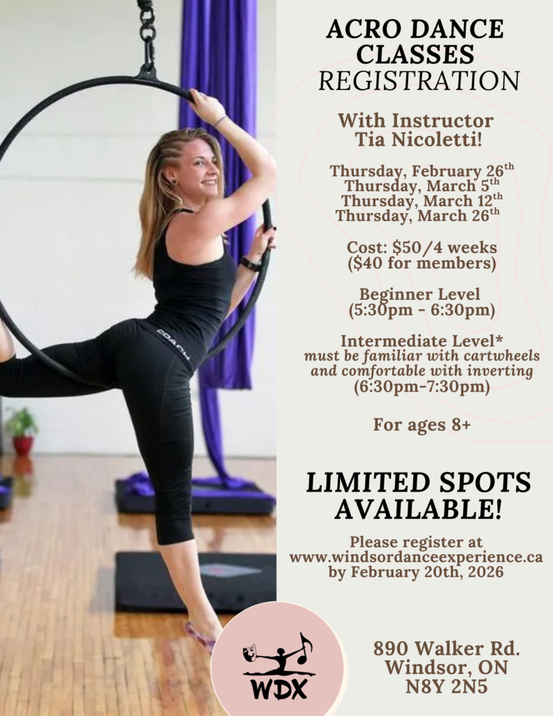 Introducing a new session of ACRO DANCE CLASSES with instructor Tia Nicoletti!